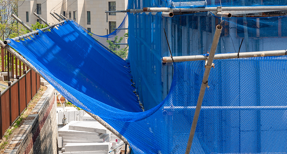 공사 중 도구, 자재, 또는 건축 잔해물이 아래로 떨어지는 것을 방지하여 작업자 및 주변 사람들의 안전을 지킵니다.